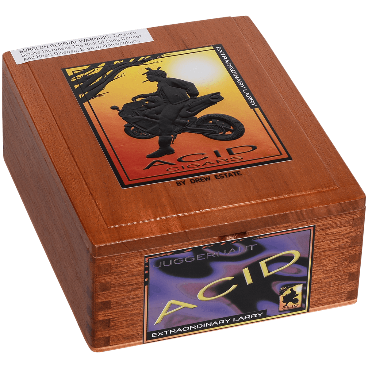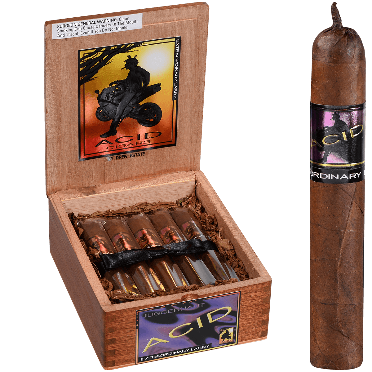 Acid Juggernaut (purple) cigars are full-bodied with the Extra Ordinary Larry Maduro crushing all in its path. Experience this super star of complex aromatic hybrids and release you inner flavor.