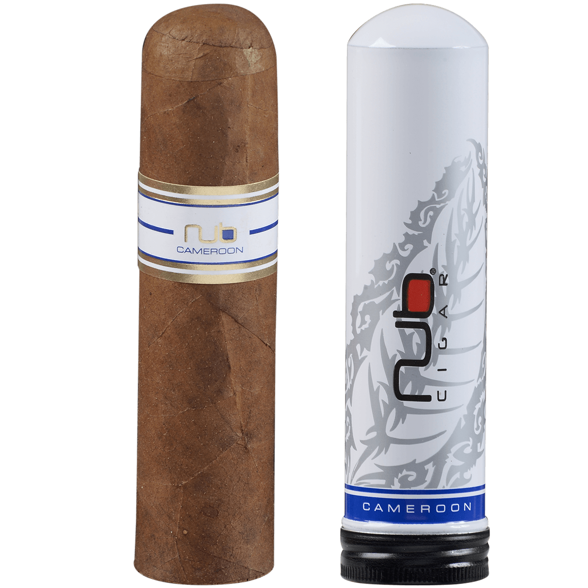 The game-changing shape and size of the nub premium handmade cigar, packaged in a box of 12, is wearing a toasty and toothy African Cameroon wrapper for this line extension. Underneath a very colorful aluminum tube, resides a medium bodied little fire plug that is brimming with tantalizing flavors of earth, spice and rich top notes of coffee and cedar.